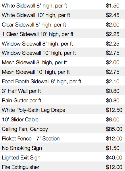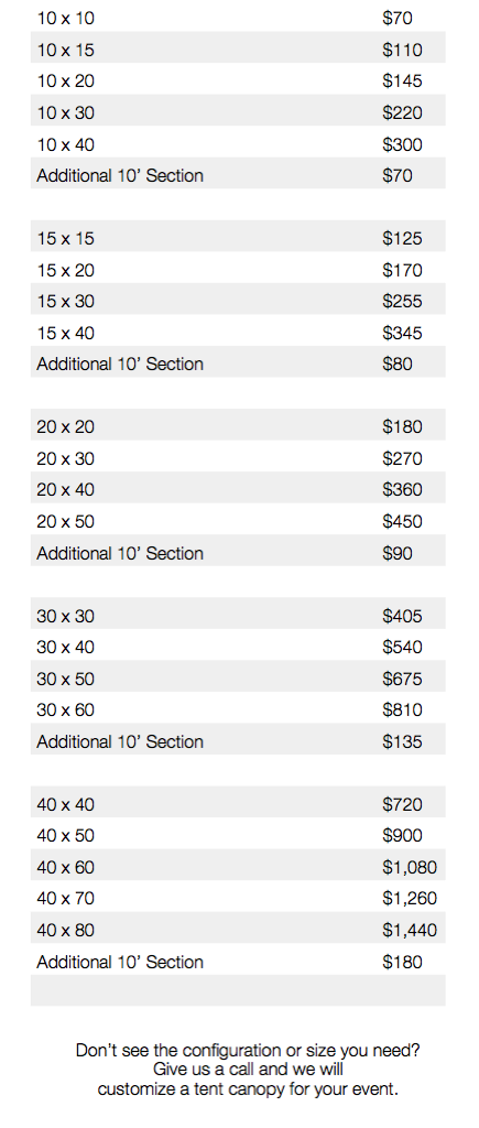 We can configure a tent to fit your needs. We also carry a variety of colors and clear tops. Contact Amazing Tents for more information.